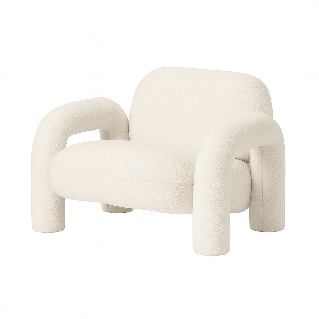 Fotoliu tapițat cu material tip boucle Noma, alb, 90x95x65